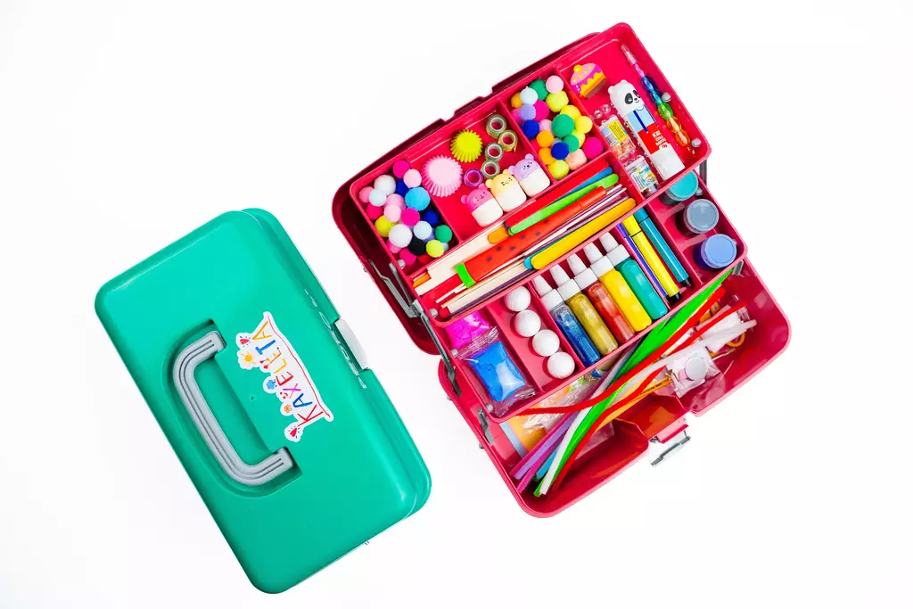 Tamanho maleta plástica: 33x16x20cm - duas bandejas e várias divisórias